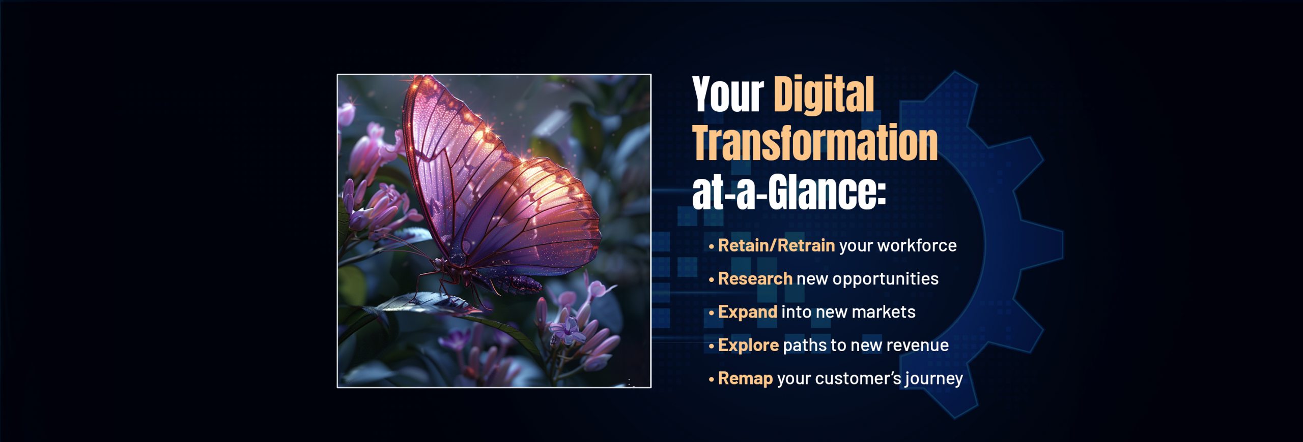 Our team, amassing over 140 years of combined experience, seamlessly integrates innovation, technology and organizational metamorphosis to actualize your business vision. We specialize in comprehensive digital transformation strategies across pivotal sectors: Manufacturing, Automotive, Mobility Solutions, Transportation, Agriculture, Pharmaceuticals, Financial Services and beyond.